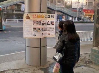 (明慧网通讯员兰州报道)在兰州街头,诉江展板一张贴出来,人们就围过来阅读。