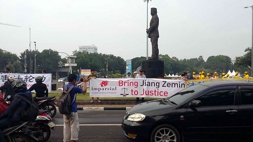 ![]() 图1-2:雅加达法轮功学员在世界人权日的五天前举行集会,唤起人们对中共迫害法轮功的关注。 |