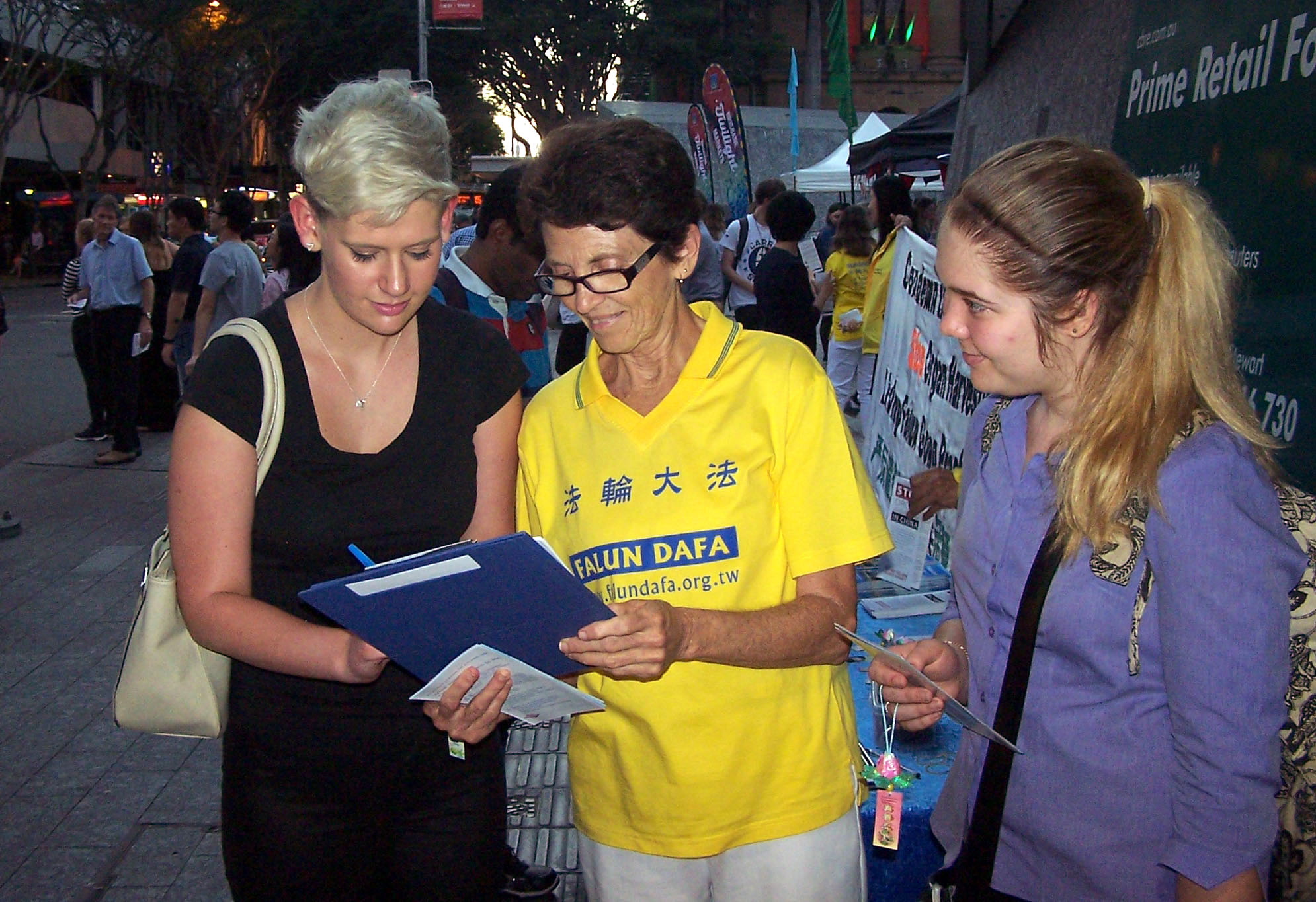在征签过程中,很多当地西人都表示早已听说过中共活摘法轮功学员器官的罪行。他们非常同情法轮功,憎恶中共恶行,但又不知道怎样支持法轮功,现在可以签名支持“诉江”帮助制止迫害,非常高兴,并感谢法轮功学员给他们提供了支持正义、表达心愿的机会。