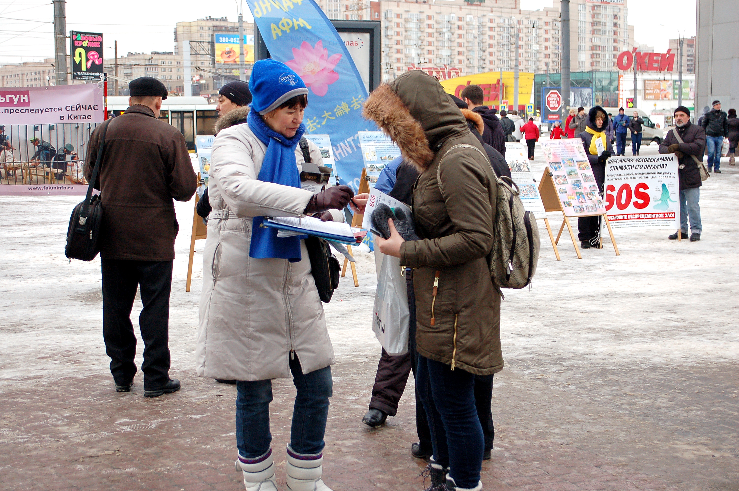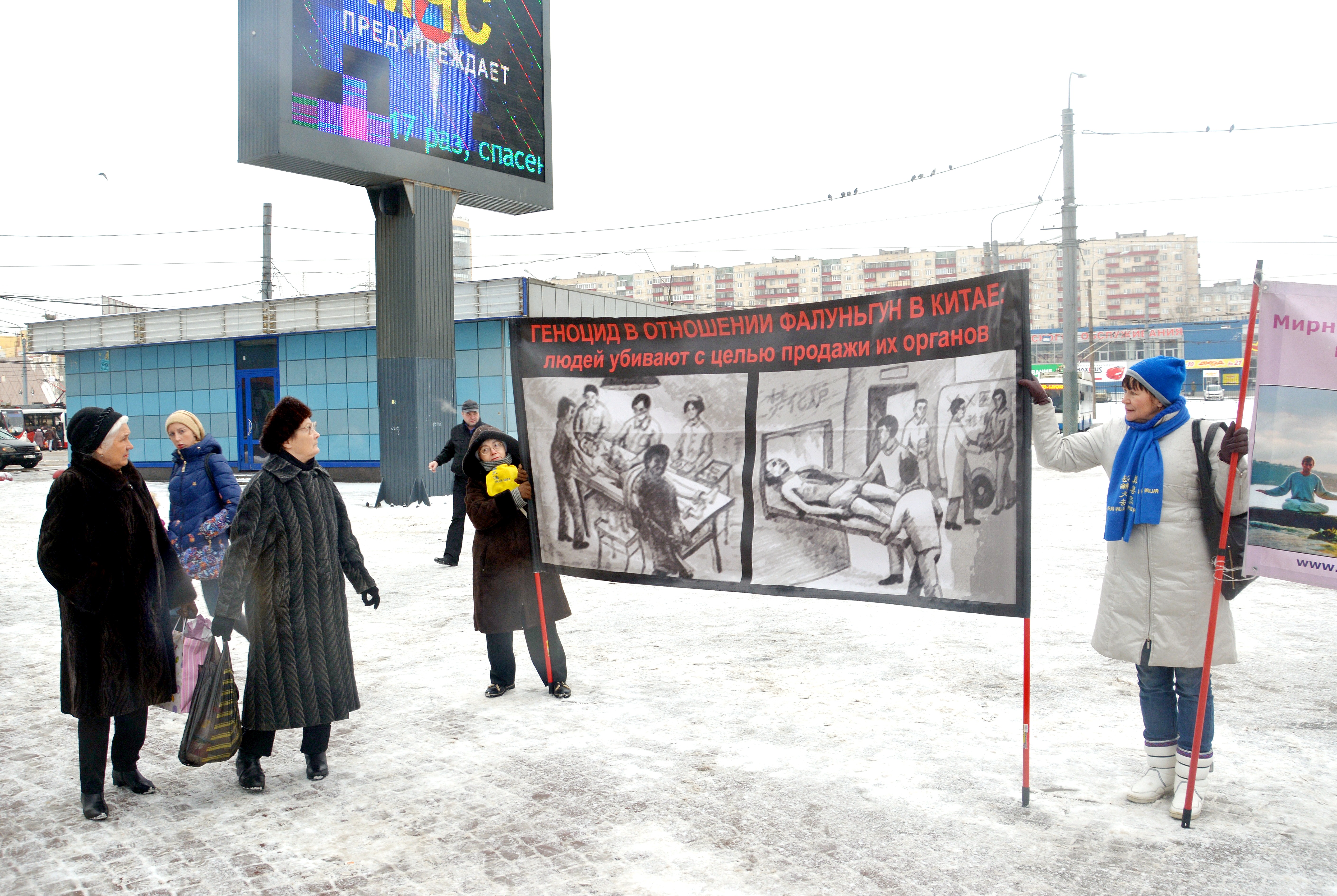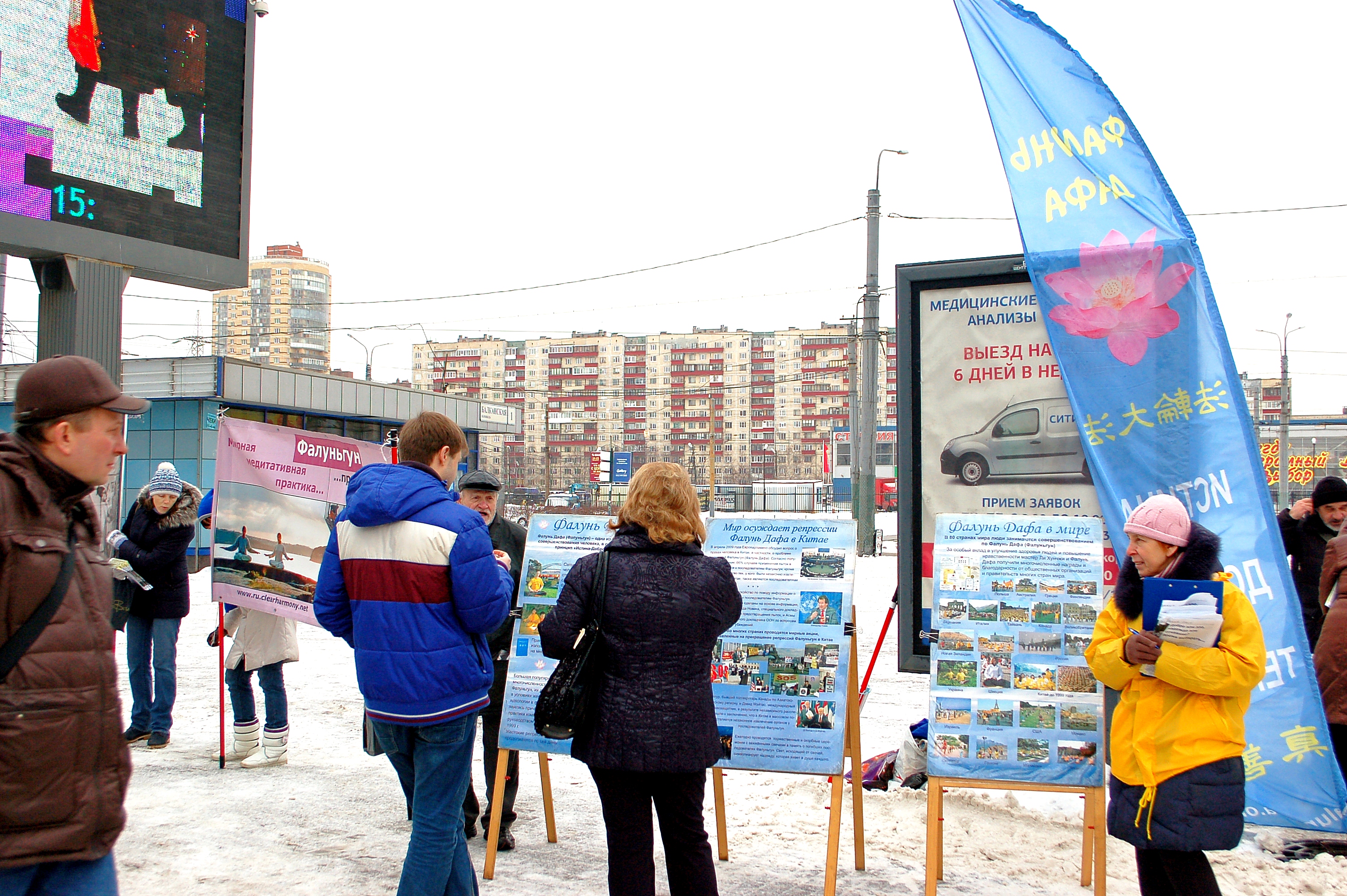 ![]() 俄罗斯圣彼得堡法轮功学员来到繁华的“库普切诺”地铁站附近向过往民众揭露中共残酷迫害法轮功学员的罪行。 |