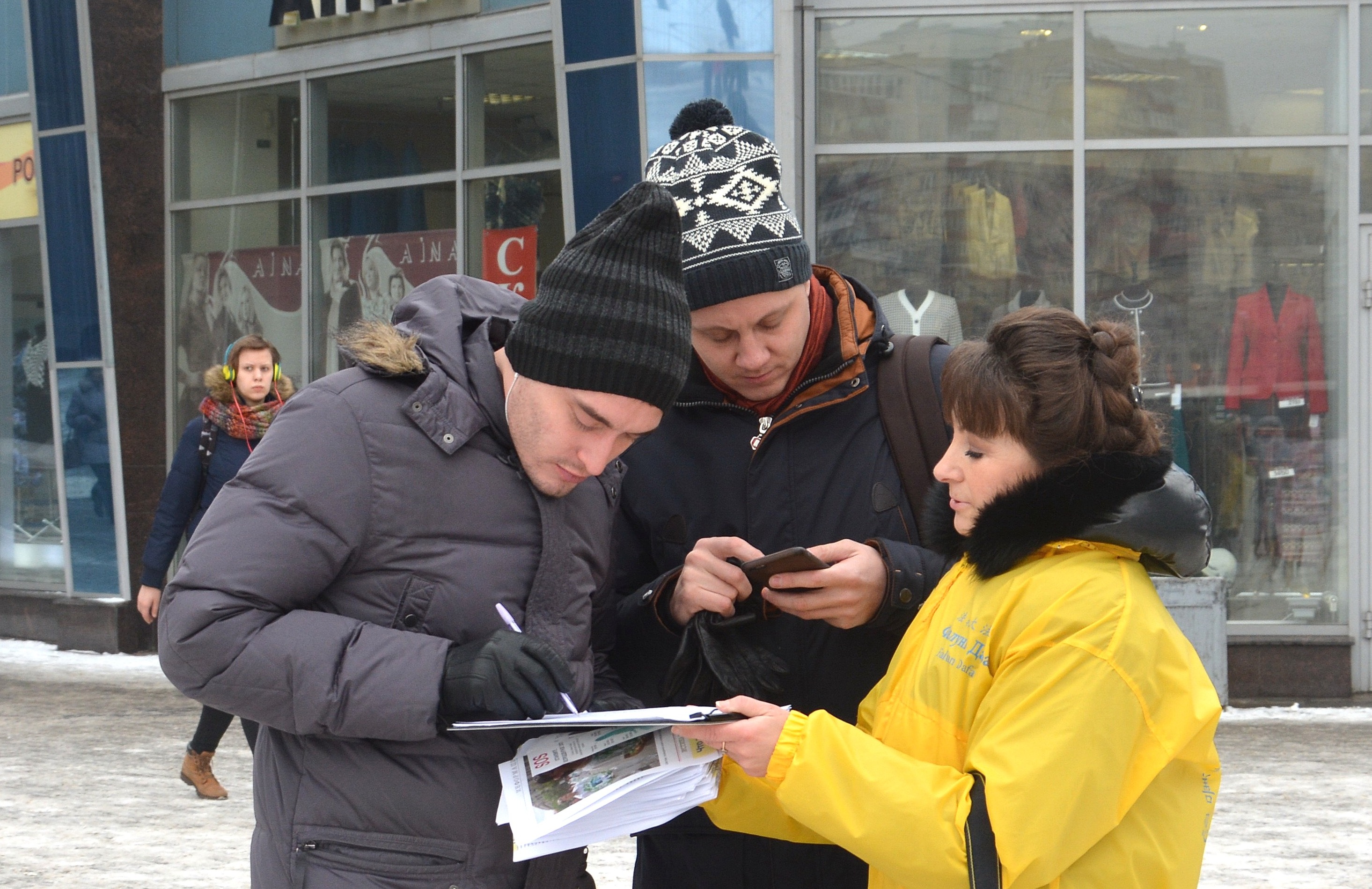 一名过路的男子向学员详细了解了真相,之后他不仅自己签名,还主动向其他行人介绍情况,并呼吁他们签名制止这种迫害。他对学员们说:“你们做的很对!有你们做这样的事情真好!”