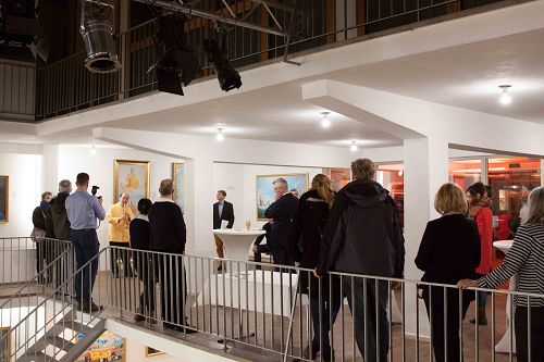 ![]() 图2-4:五十多位各界人士,包括当地的艺术家前来参加了画展开幕式。 |