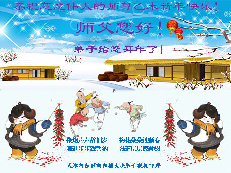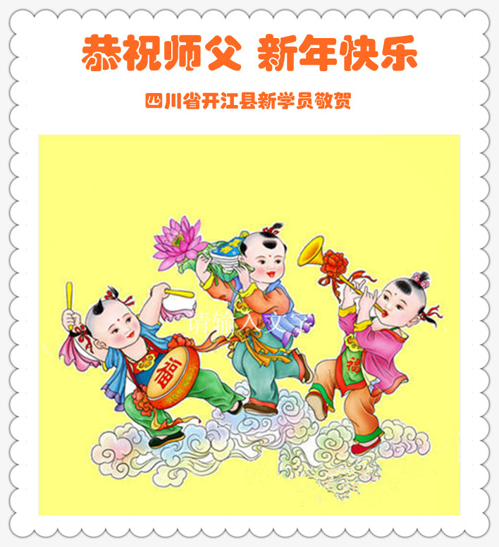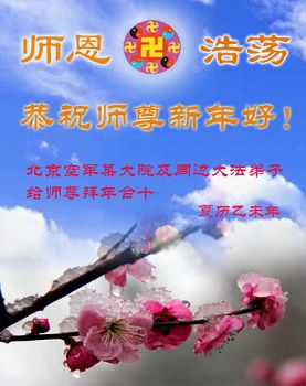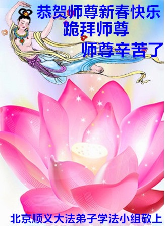 每逢佳节倍思亲!师尊过年好!师尊我们非常想您!在新的一年里,我一定要改掉执着网络的不好的心,多讲真相,多学法炼功,时时刻刻发正念,铲除余恶,救度不明真相的世人。大恩不言谢,千言万语一句话:伟大师尊您辛苦了!叩拜恩师!