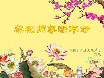 师尊您好!新年到了,我二人给您拜年了,我是新学员,师尊慈悲给了弟子生命,千谢万谢也回报不了师尊恩德,只有用行动,多学法,放下常人心,做好三件事。救度更多众生,不辜负师尊的慈悲苦度!