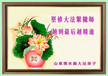 茫茫宇宙中,能够幸遇宇宙大法,弟子深感荣幸!弟子一定珍惜这千载难逢的神圣机缘,与其他的同修互相配合、互相圆容,共同做好三件事,兑现神圣的史前誓约,救度更多被邪*党-欺骗的世人,圆满随师父回家!