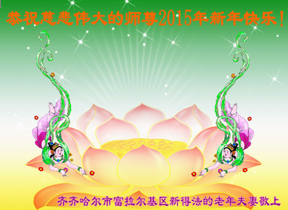 值此2015年新年来临之际,我们全家大法弟子共同恭祝慈悲伟大的师父新年快乐!并由衷的感谢您对我的慈悲苦度,对我的呵护!