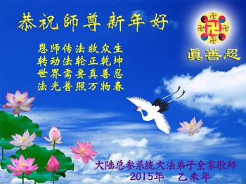 值此2015羊年新年之际,恭祝伟大慈悲的大法恩师李老师新年好!师父辛苦了!