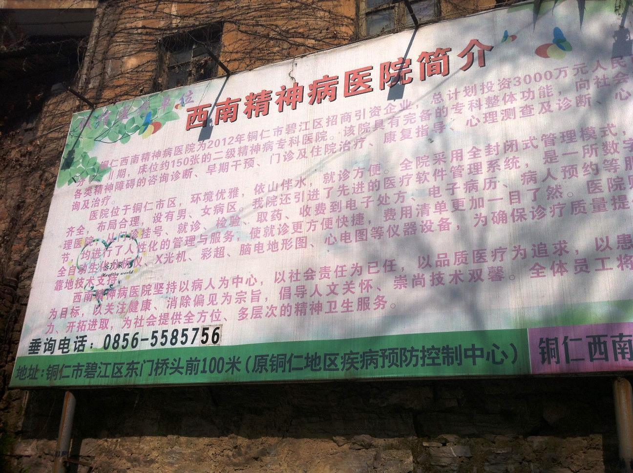 铜仁西南精神病医院地址:贵州省铜仁市碧江区东门桥头前100米 (环东路水晶江岸站台旁边) 邮政编码554300