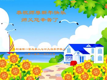 “法轮大法好!”“真善忍好!”我要做个“法正人间时的大法弟子”。恭祝李大师新年快乐!