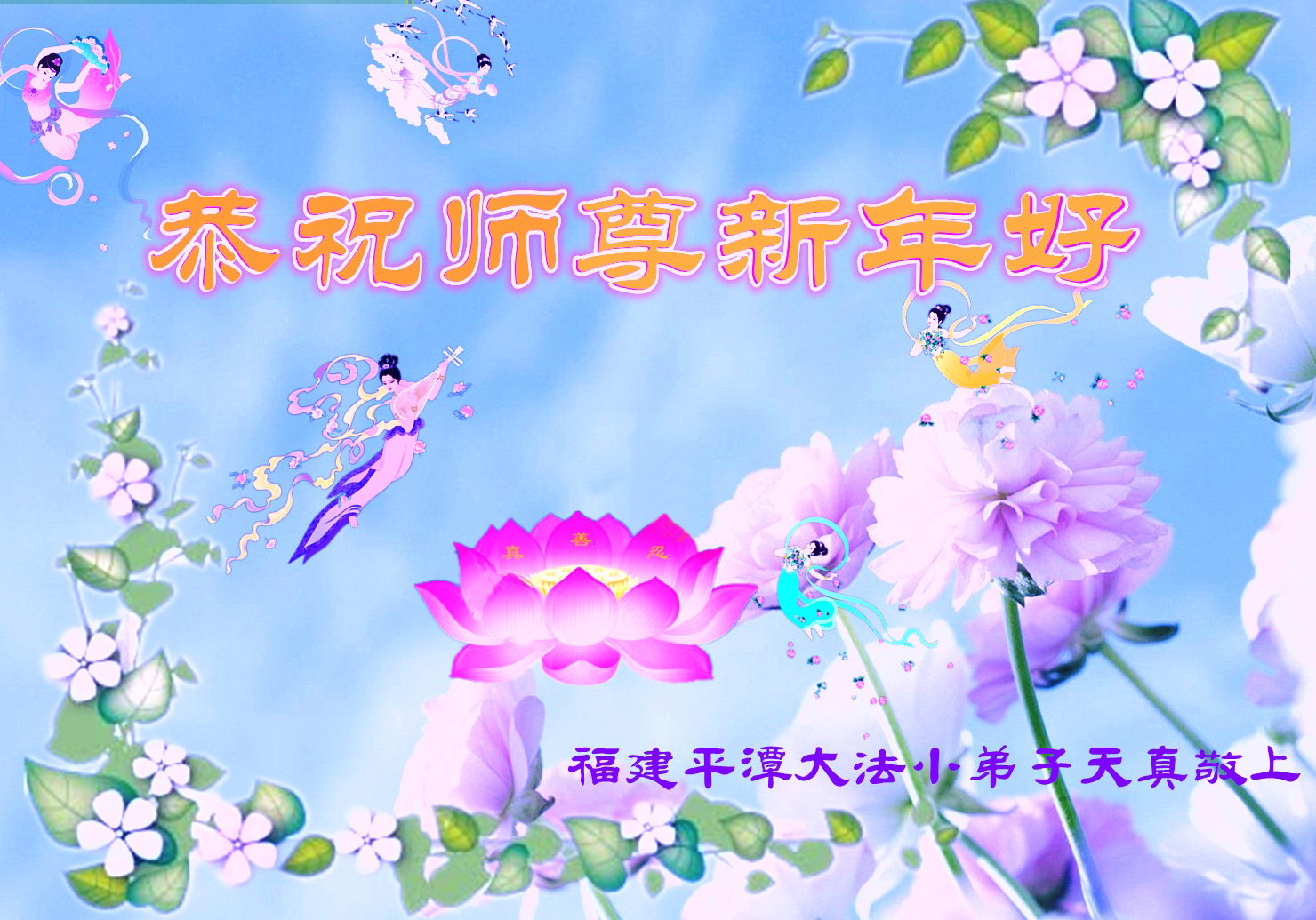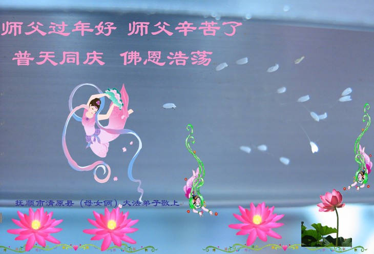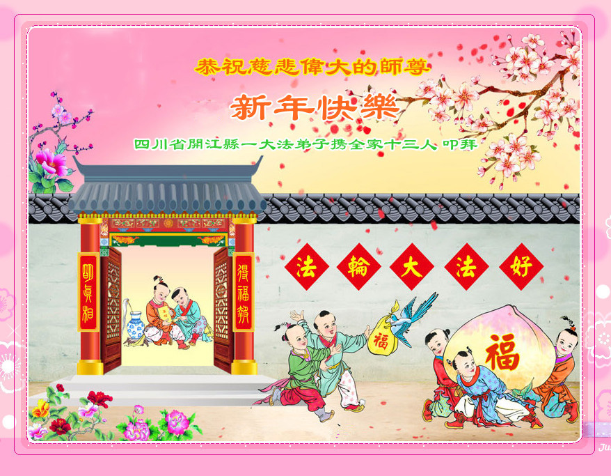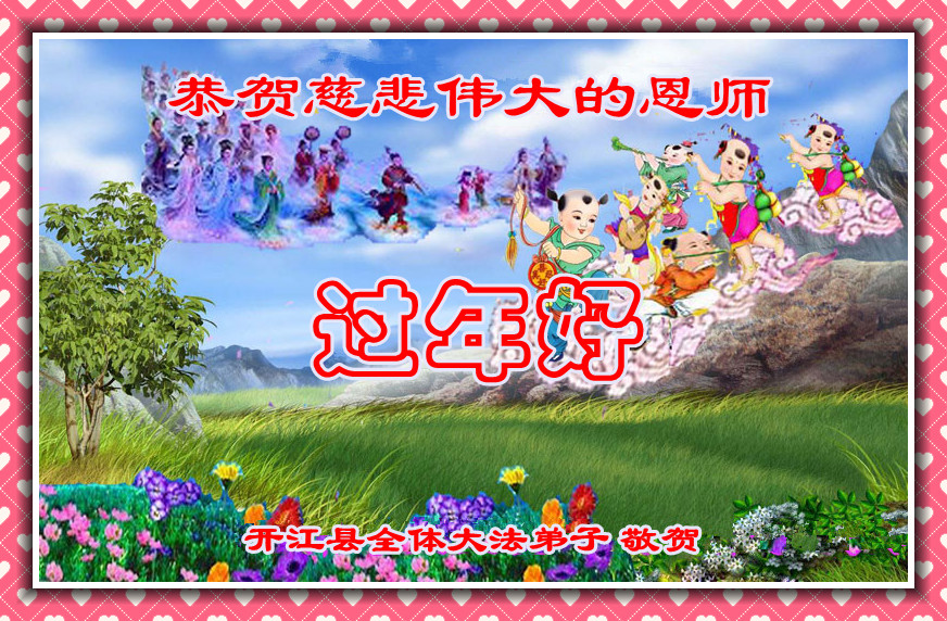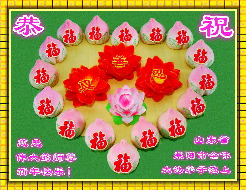 一元复始,万象更新。在新的一年里,弟子们一定谨记师尊教诲,向内找、向内修,决不辜负师尊的慈悲救度。努力做好三件事,跟上正法進程,多救人,回报师恩。盼与师尊早日团聚。给师尊拜年!