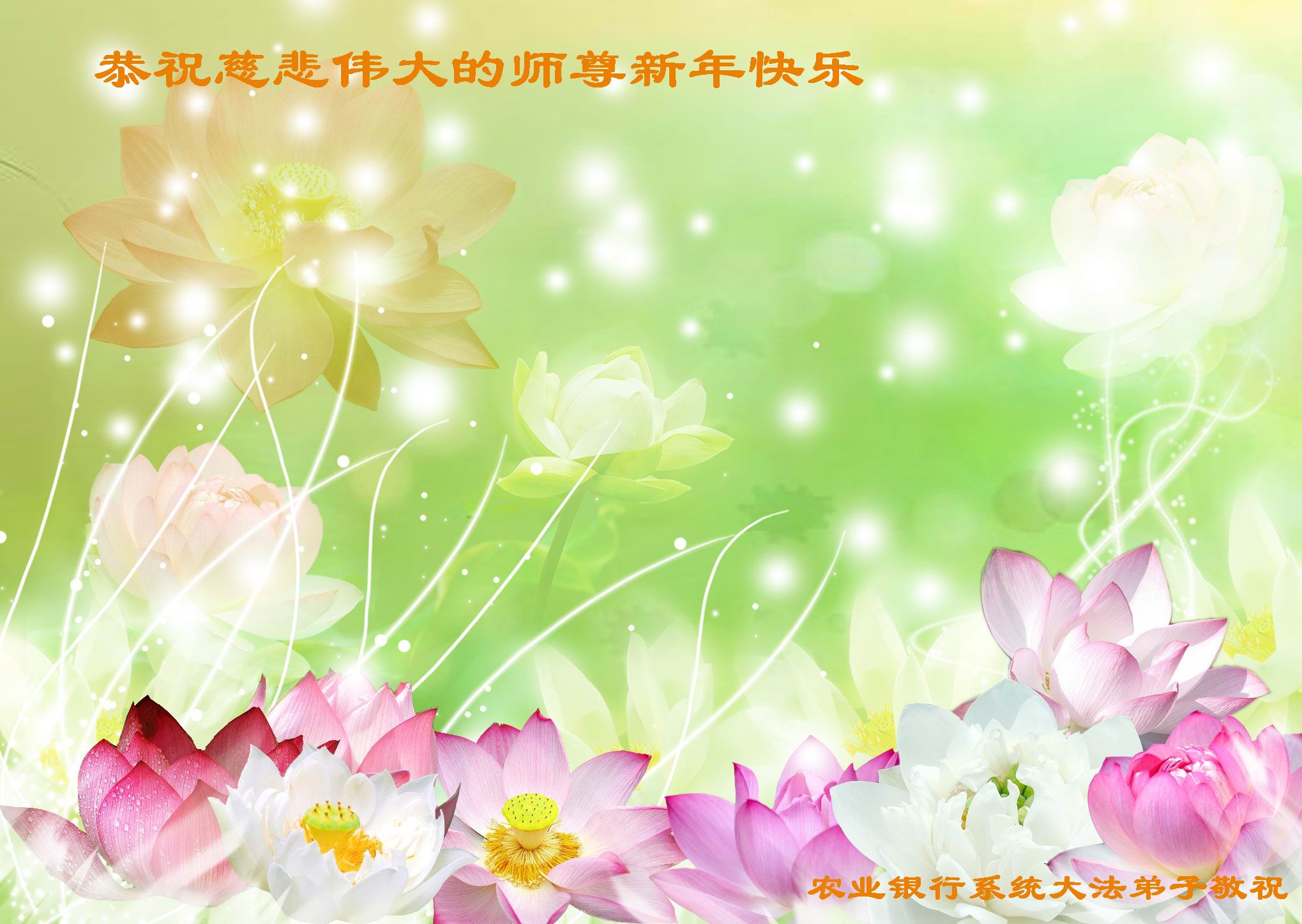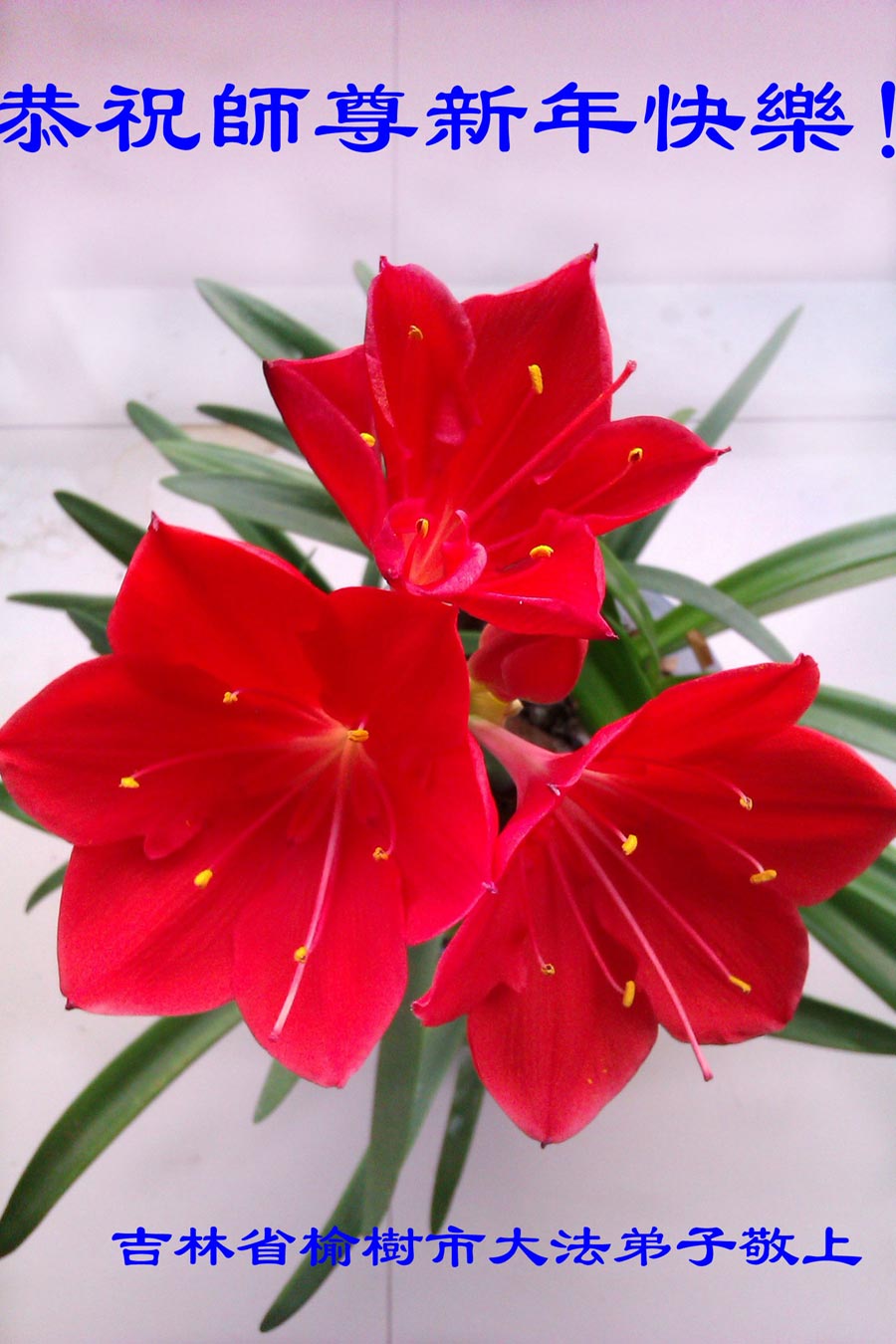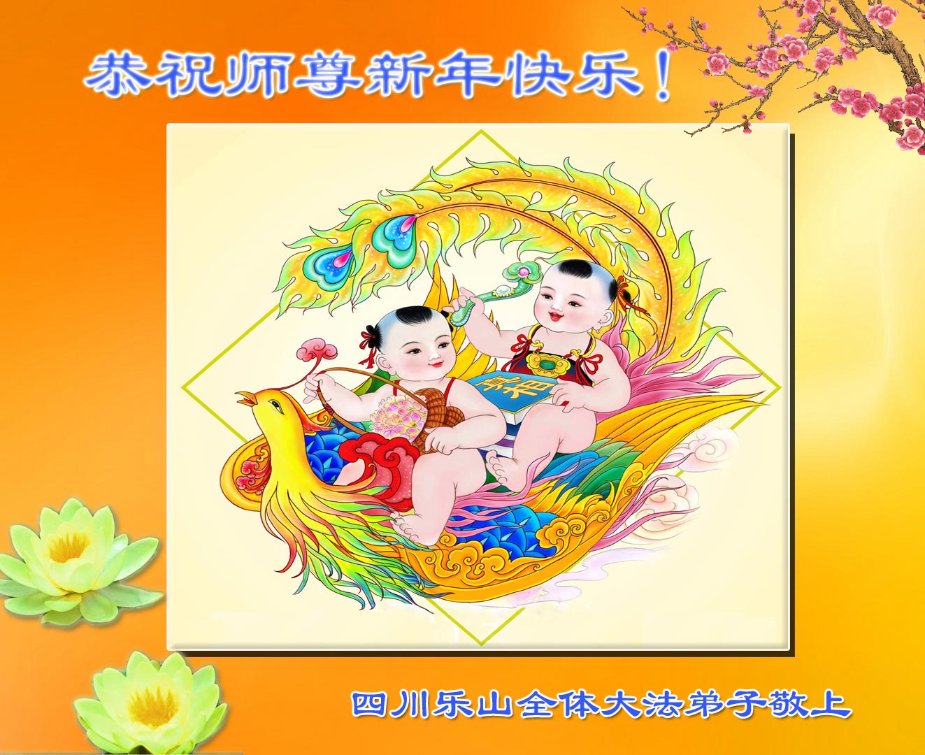 一元复始,万象更新。在新的一年里,弟子们一定谨记师尊教诲,向内找、向内修,决不辜负师尊的慈悲救度。努力做好三件事,跟上正法進程,多救人,回报师恩。盼与师尊早日团聚。给师尊拜年!