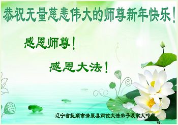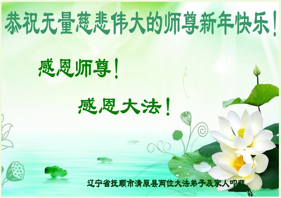 我是辽宁清原人,有个三辈十多口的大家庭。妈妈的辈份最大,并学炼法轮功,今年七十六岁了。以前她的脑血栓等多种疾病不但没了,而且精神状态特别好,炼法轮功后,十多年来,没打一针,没吃一片药,从妈妈身上我们见证了法轮大法的神奇与超常。我们都愿意听妈妈的话,妈妈给我们的真相,《·九·评*》书、神韵光盘,我们都看了,除了我三个月的女儿外,全家人都声明退出了党团队邪恶组织。妈妈的事,我们全家都大力支持与协助。也时常帮传一些真相资料。“法轮大法好!真善忍好!”时刻铭记心间。这几年来,生意兴隆,好事连连,一顺百顺。一、2012年,大哥开车从黑龙江回辽宁,车里坐着四个人,行驶途中,突然迎面冲出一辆摩托车,上面骑着两个人,就在那相撞的刹那间,哥哥的车突然急转弯冲出道下,缓缓下滑,落到仅有的一个土坡上停住了,六个人两台车都平安无事,我们全家都明白,是李大师的护佑。二、哥、姐的三个孩子学习成绩并不十分好,却很顺利的都考上了大学,两个已毕业,没花一分钱,却都找到了理想的工作。三、我结婚已十六年了,一直没有孩子,曾到处求医问药无效,今年马年我媳妇惊喜怀孕并生下一个可爱的女儿,给我们原本和睦的家庭又带来了欢乐!在此新年之际,我们全家人向李大师叩首,并恭祝李大师过年好!新年快乐!