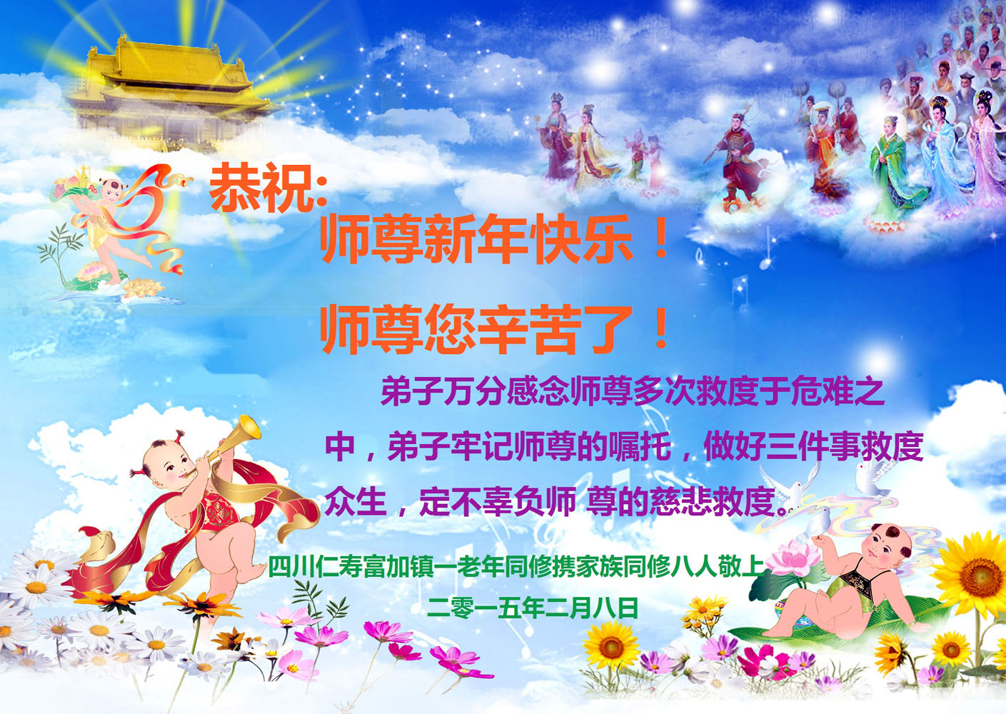 <英文版: http://en.d2s3ombhnov3zf.cloudfront.net/html/articles/2015/2/17/148539.html>各行业大法弟子恭祝师尊过年好(28条)