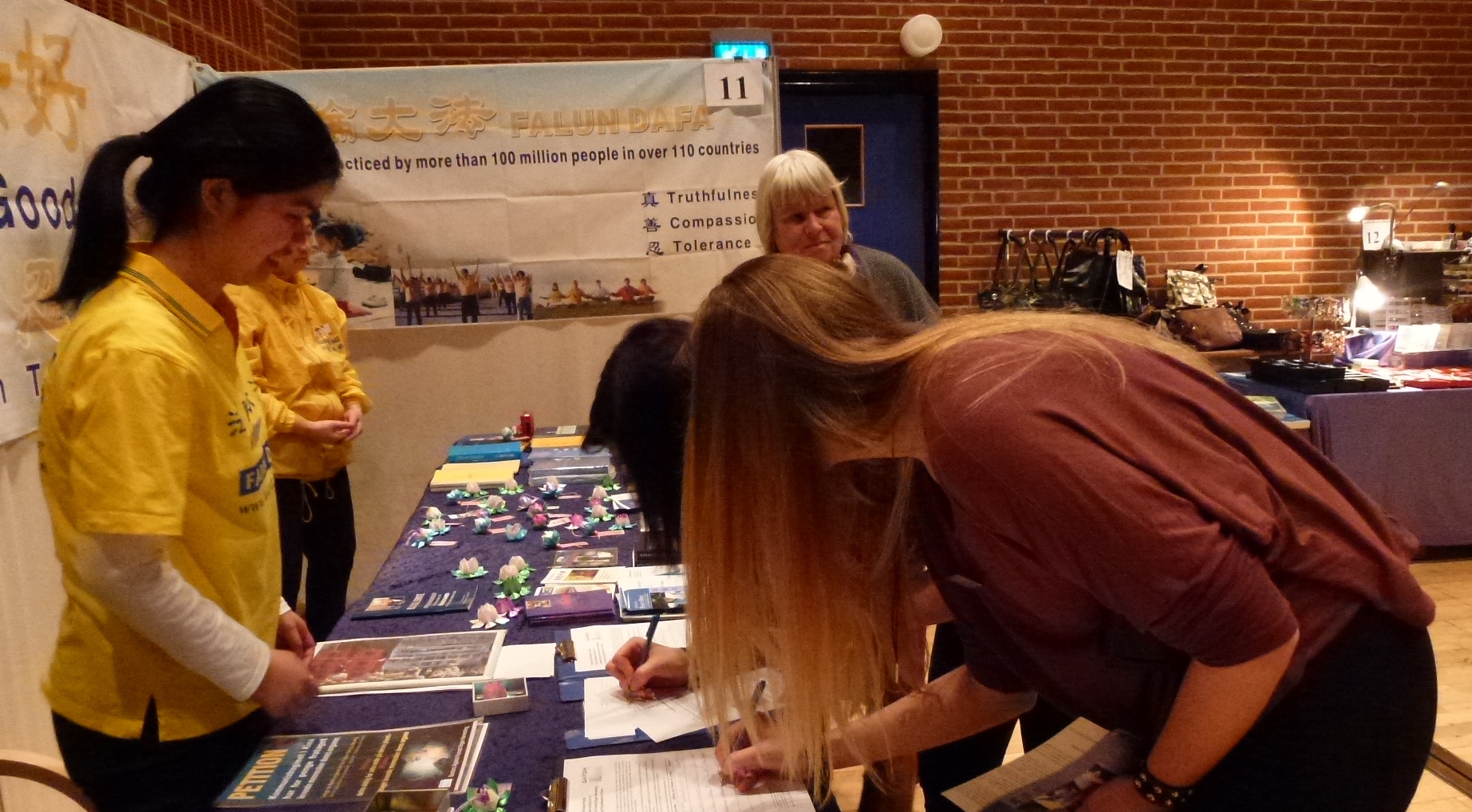 一位读师范学院的女生和她的两位朋友兴致勃勃地看展,当听到法轮功在中国被迫害后,都毫不犹豫地签上了自己的名字。一位母亲带着一双儿女参观博览会也签名支持法轮功。一位在大赦国际工作的先生签名后表示,知道一些法轮功在中国被迫害的情况,也知道中共活摘法轮功学员器官的罪恶。