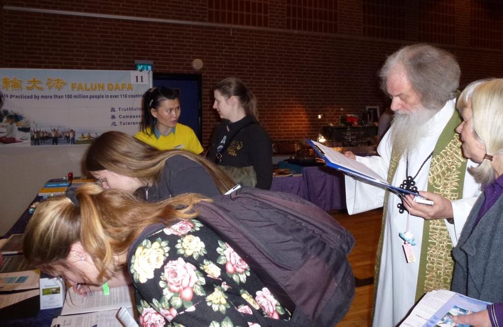本次博览会有近百家不同的商家,协会和公司参展。法轮功的展位吸引众多的参观者和参展人。人们在这里了解到法轮功在世界弘传一百多国家的盛况,以及中共迫害法轮功,活摘法轮功学员器官的罪恶,纷纷签名支持法轮功学员反迫害。还有不少民众当场学炼法轮功。