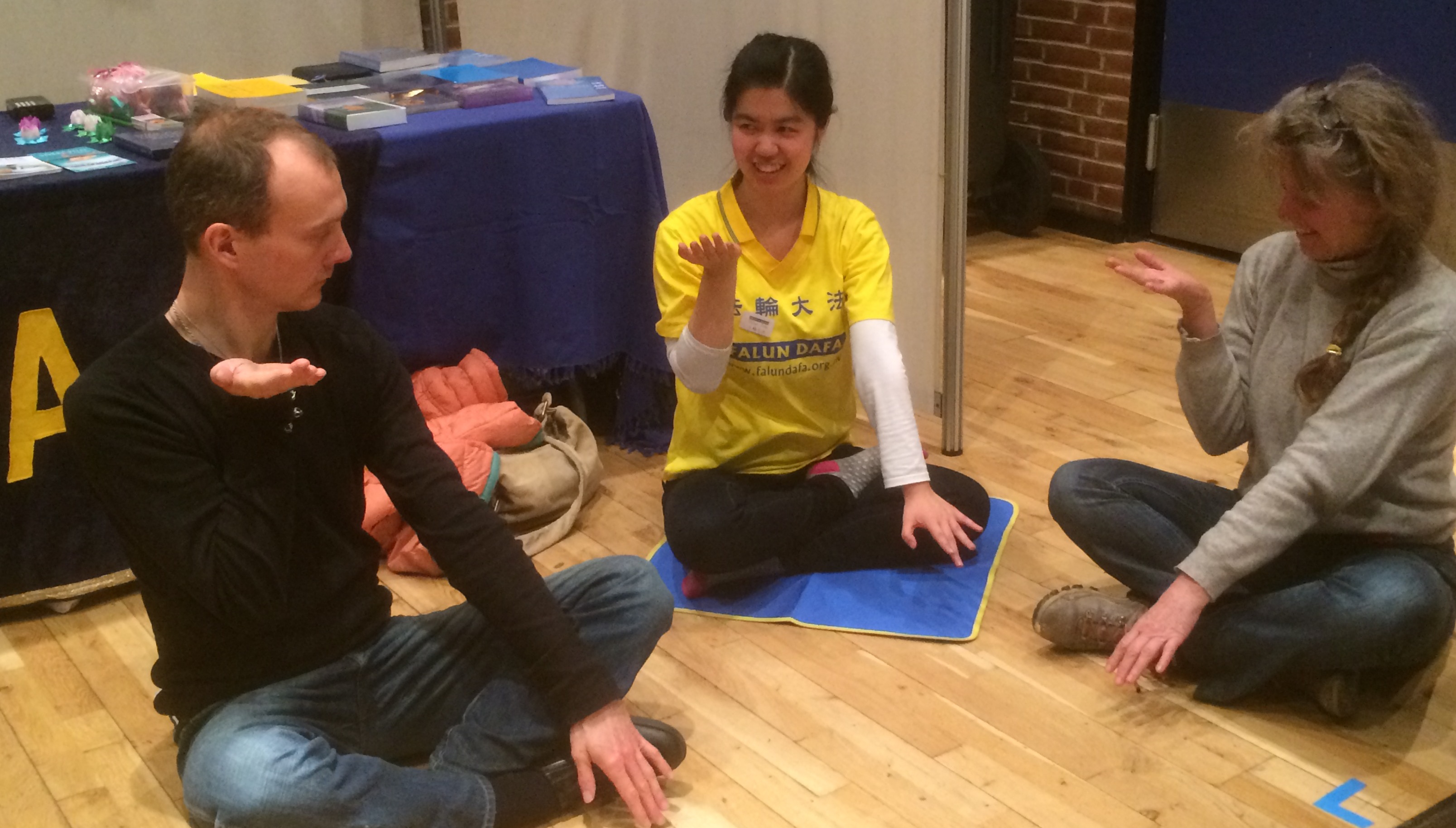 一名十多岁的女孩和母亲一起来观看健康博览会。这位女孩对打坐、气功很感兴趣,也曾练过打坐。她来到法轮功的展台前认真听学员讲解,她想了解什么是法轮功。学员告诉她,法轮功遵循真、善、忍的原则,对精神和身体都很好。对这一课题很感兴趣的她久久不愿离去,与此同时她还知道了法轮功在中国被迫害的情况,她立即在征签表上签名。签完名她才发现母亲不知什么时候已经去看别的展位,不一会儿她找到母亲一起回到法轮功展位签名。