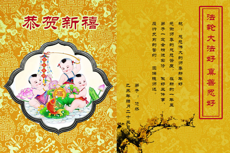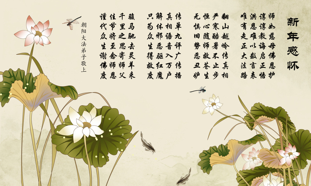2010年,我走入大法修炼,从此开始了新的人生。师恩浩荡,用尽人类的语言也难以表达。在此叩拜师尊,祝师尊新年快乐!