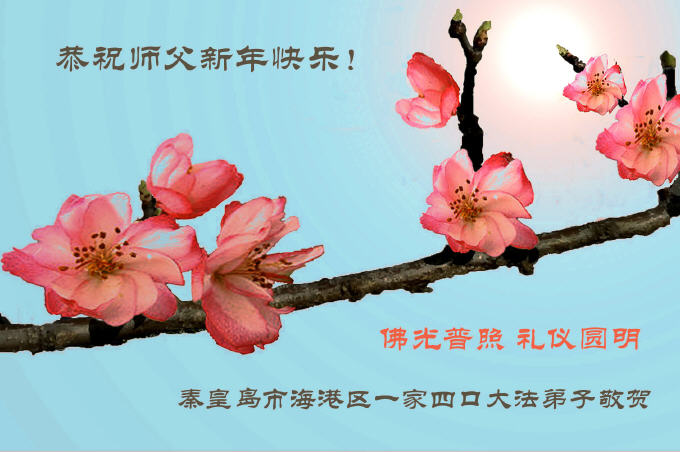 值此新年到来之际,我们全家恭祝伟大的李洪志师父新年快乐!谢谢大法师父的救度之恩!跪拜师恩!双手合十!