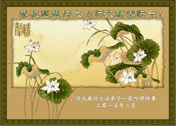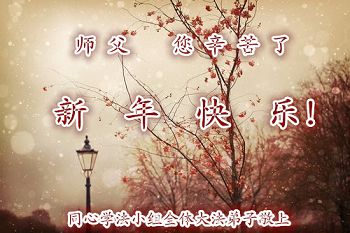 感谢师尊让我二人能有机会助师正法,我们感到万分荣幸!对师尊的慈悲苦度我俩感恩不尽!唯有继续做好三件事。恭祝师尊新年快乐!