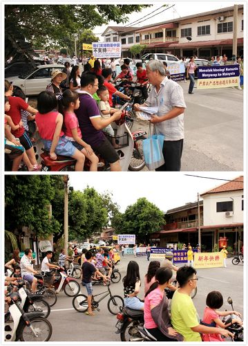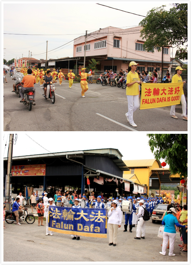 ![]() 大年初三,法轮功学员来到了霹雳州华人聚集的拱桥新村举行新年游行 |