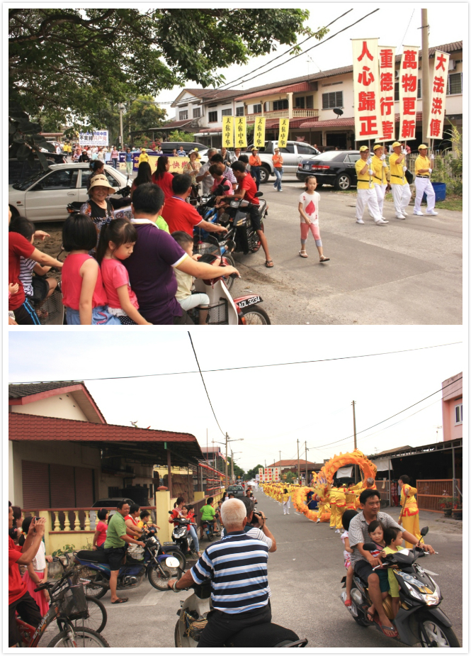 马来西亚法轮功学员自二零一零年起,不辞劳苦的举办多场新年游行,弘扬华人传统文化,所到之处获得了民众正面反馈,广受各民族的欢迎。
