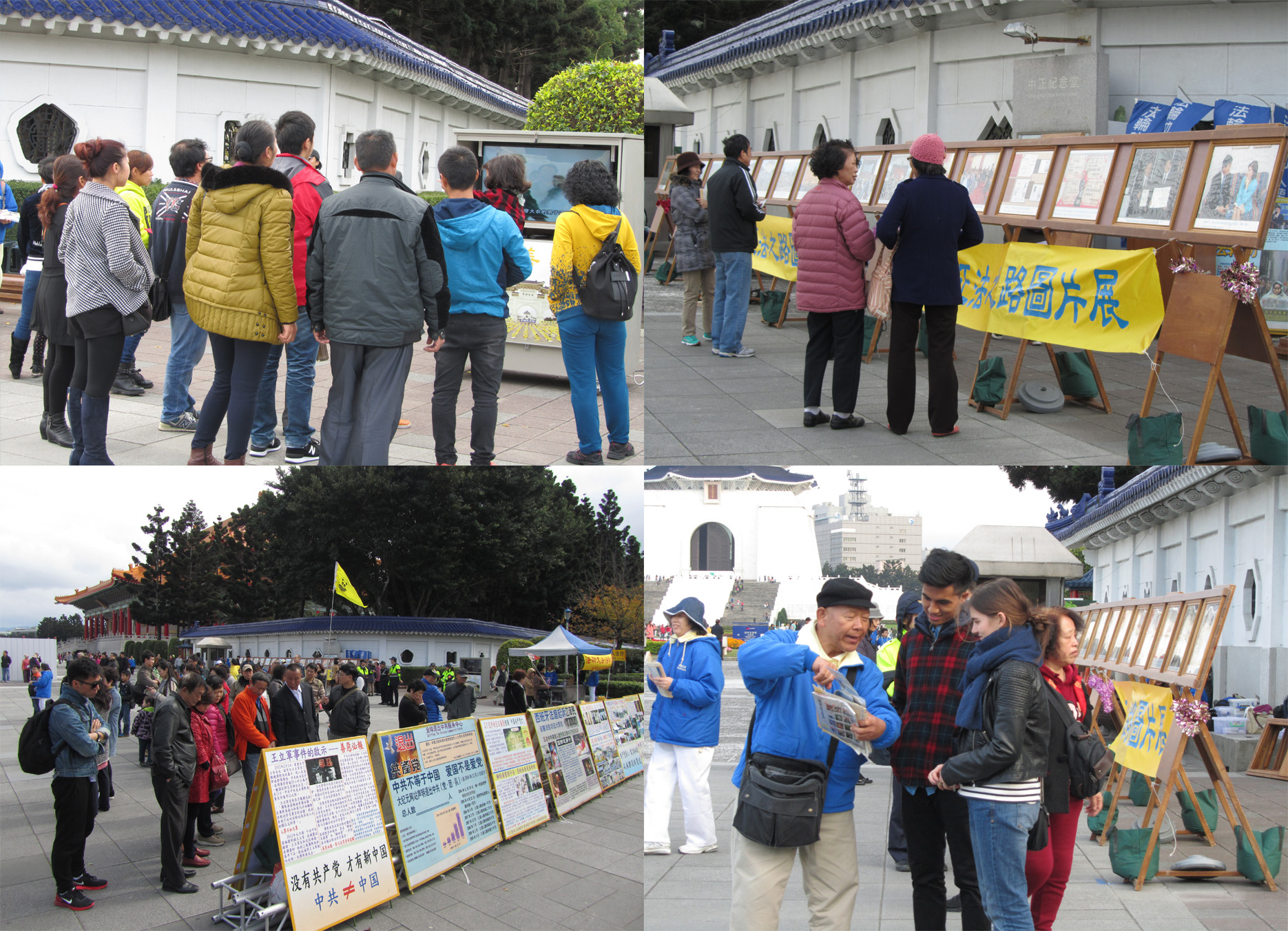 ![]() 图1:台北地区法轮功学员于二零一五年二月一日在“自由广场”集体大炼功、传播真相。 |