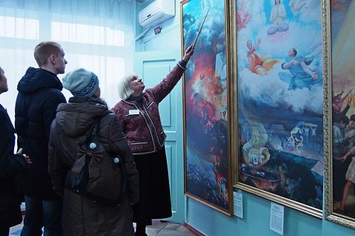 克拉玛托尔斯科城市网在报导中说:来自台湾、日本、新加坡、美国、加拿大的十二位艺术家,把他们对“真、善、忍”信仰的理解溶在这四十幅画中。这些画家侨居在中国大陆以外,否则他们就会受到(中共的)迫害。