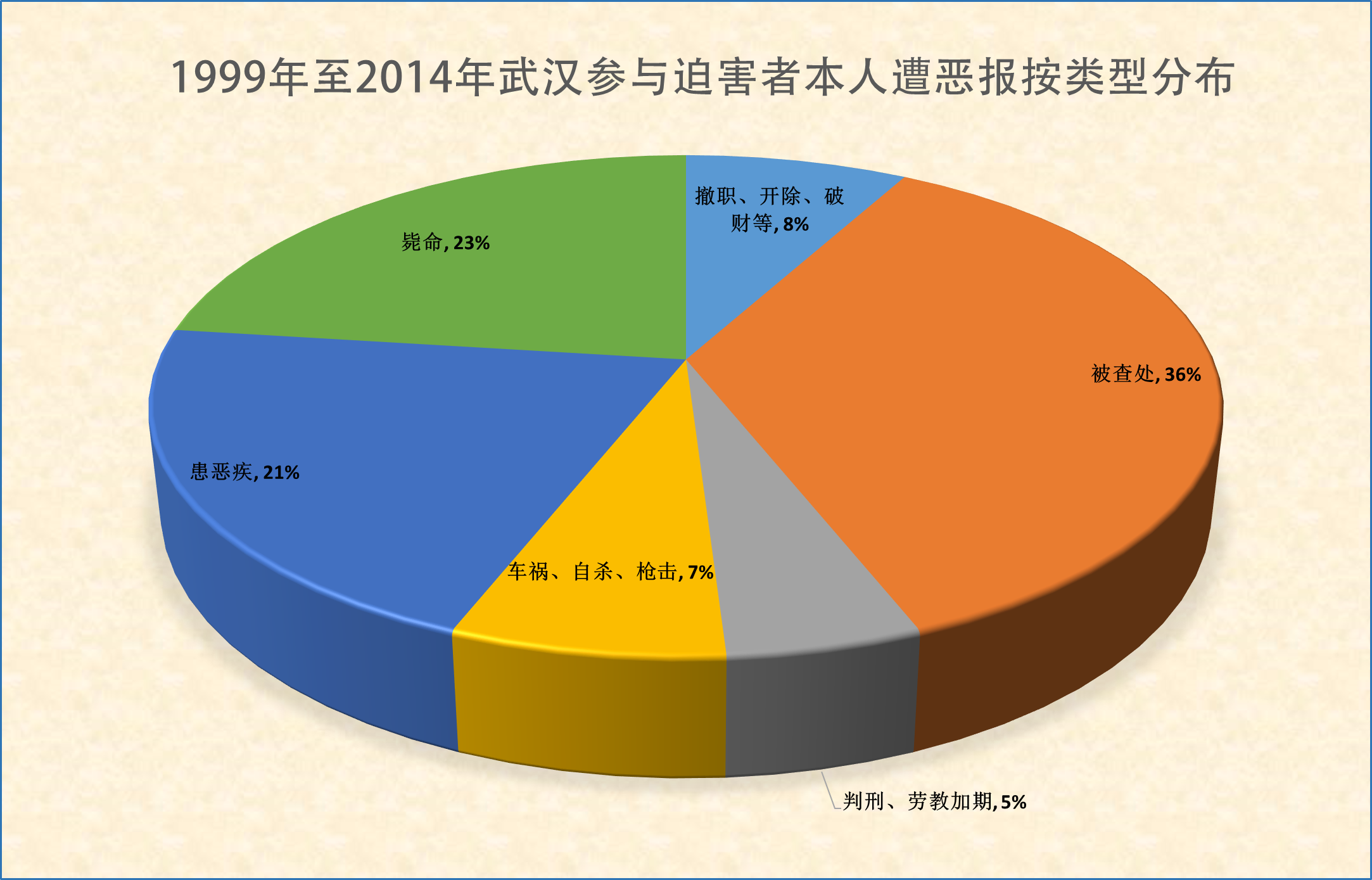 ![]() 图1.湖北武汉参与迫害法轮功学员的中共恶人遭恶报按类型分布 |
