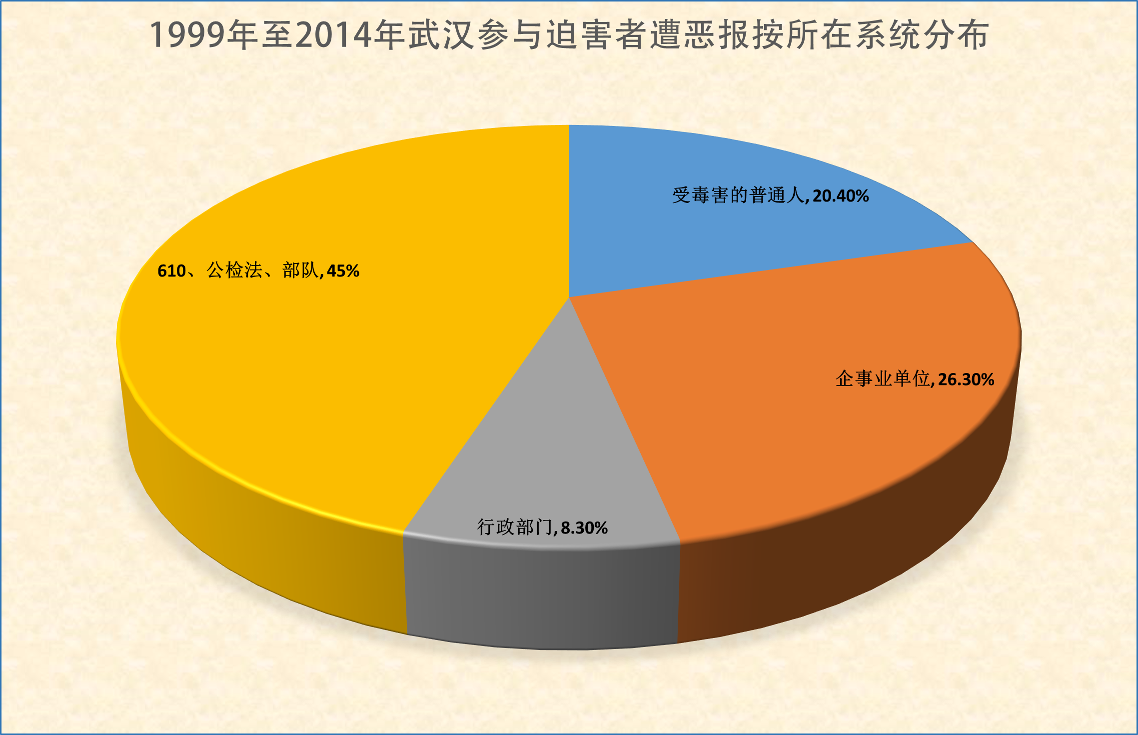 ![]() 图2:1999年至2014年湖北武汉参与迫害者遭恶报按所在系统分布 |