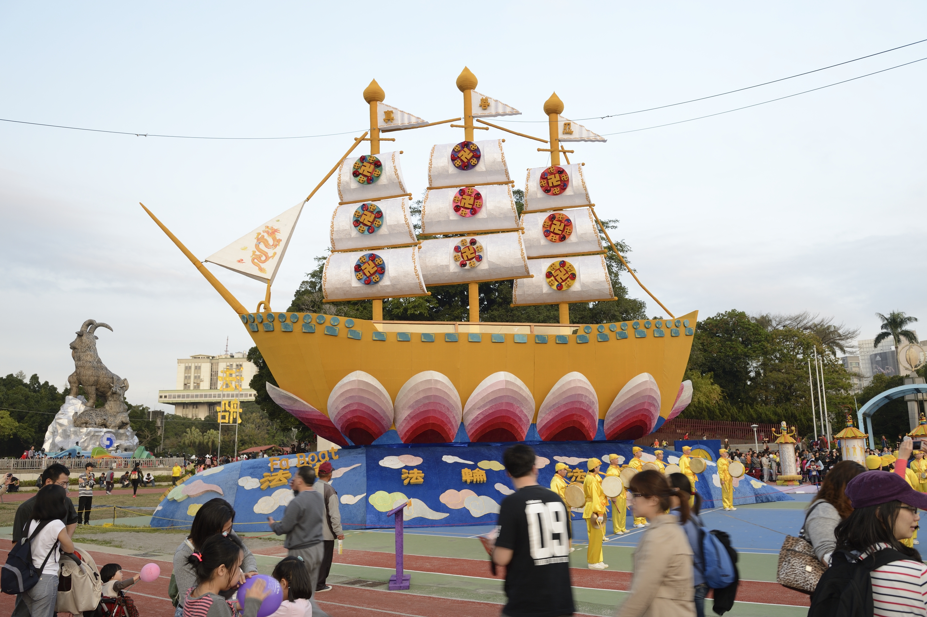 二月二十八日晚上七点半由市长林佳龙、市议员曾朝荣、法轮大法学会理事长张锦华、中华花灯艺术学会理事长翁贤良等共同点灯。灯会现场挤满来自全台各地的民众,也有很多外国游客,纷纷拍照留念,排队登上法船参观的人络绎不绝,民众赞赏金碧辉煌的法船殊胜、壮观!