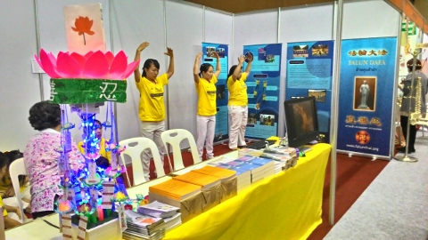 ![]() 泰国健康与美容展上,法轮功学员在展台上演示功法 |