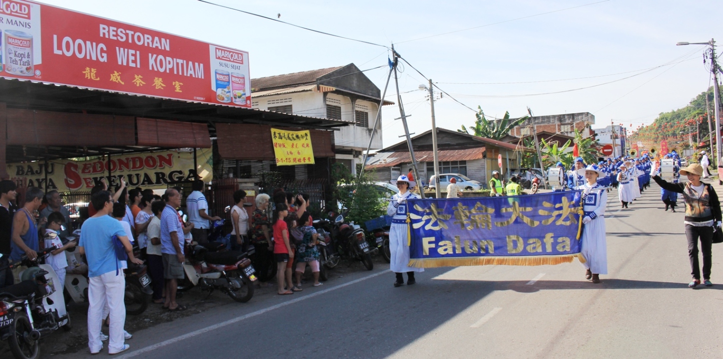 ![]() 法轮功学员来到了彭亨州而连突举行新年游行,吸引民众驻足观看。 |