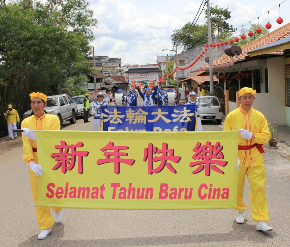![]() 法轮功学员来到了彭亨州文德甲举行新年游行。 |