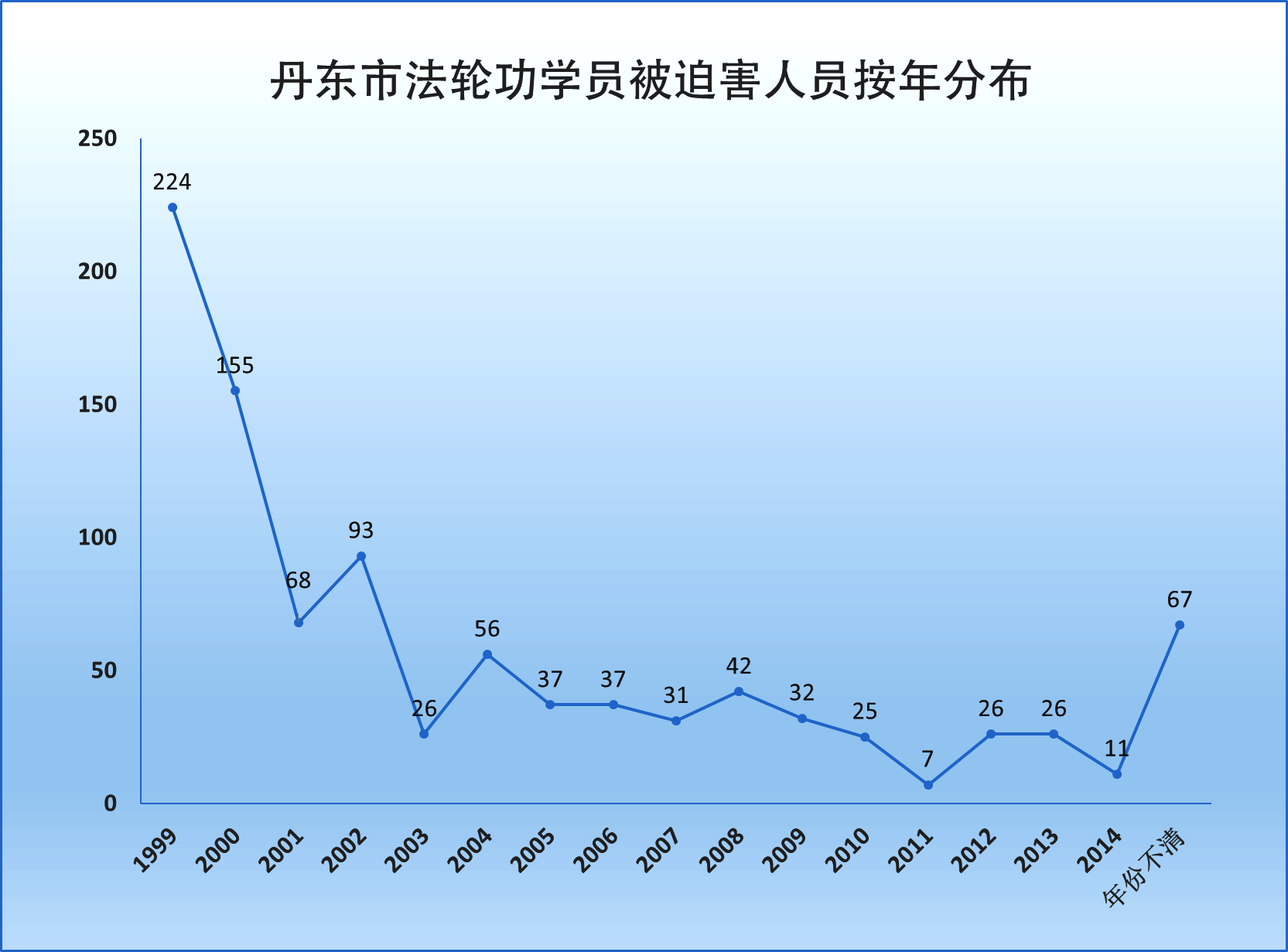 ![]() 丹东法轮功学员遭受迫害人数按年度分布 |