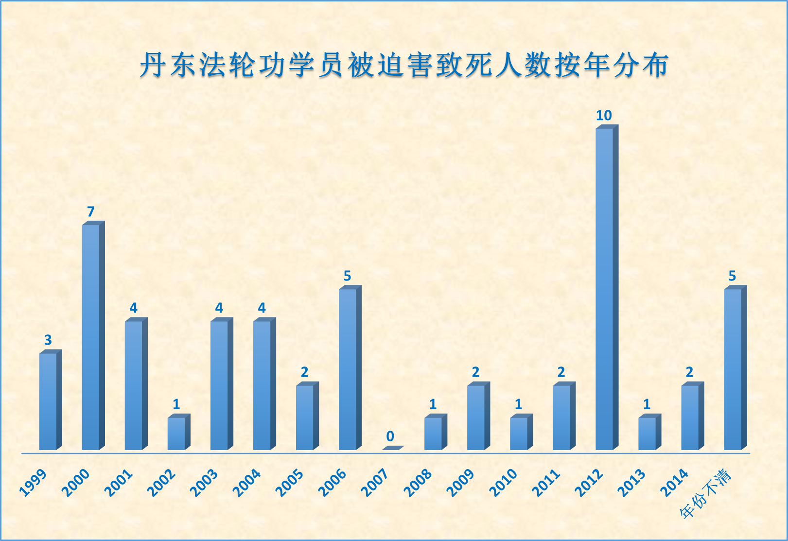 ![]() 丹东法轮功学员被迫害致死人数按年分布 |
