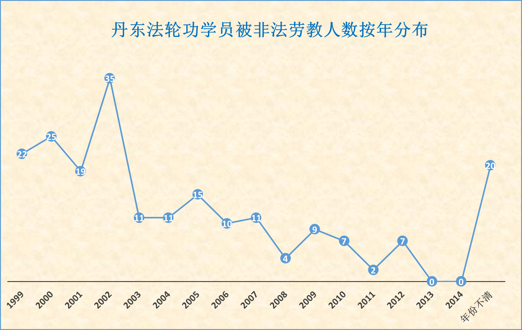![]() 丹东法轮功学员被非法劳教人数按年分布 |