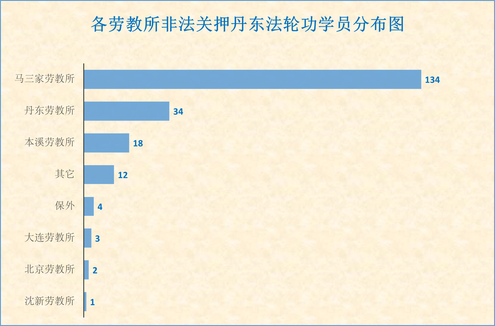 在调查过程中,得到丹东市里一份迫害法轮功的文件,内有官方公安部门的统计,称:从1999年7月到2002年5月为止,非法劳教法轮功学员219人,非法刑事拘留389人、治安拘留216人,合计605人,远多于我们统计的235人。可见实际的迫害比已经曝光的事实严重得多。