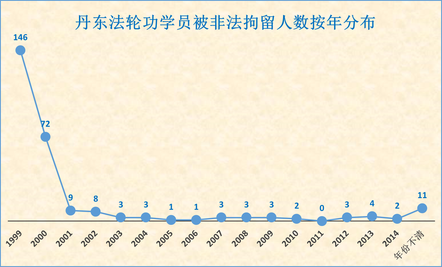 ![]() 丹东法轮功学员被非法拘留人数按年分布 |