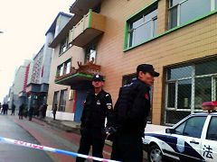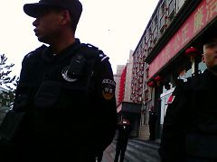 大同南郊区法院门前停满警车,两辆消防车停在道路的两端,两队消防武警用高压水龙头充水,一辆大型特警车的特警戒备以待,路被封了,过往的公交车被勒令不许进入此地段,数不清的公安、便衣、各居委会和社会安保人员来回穿梭着……