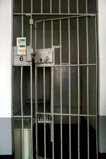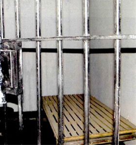 ![]() 3.3平方小监室,前面箱子里面是马桶,法轮功学员就被关在里面。 |