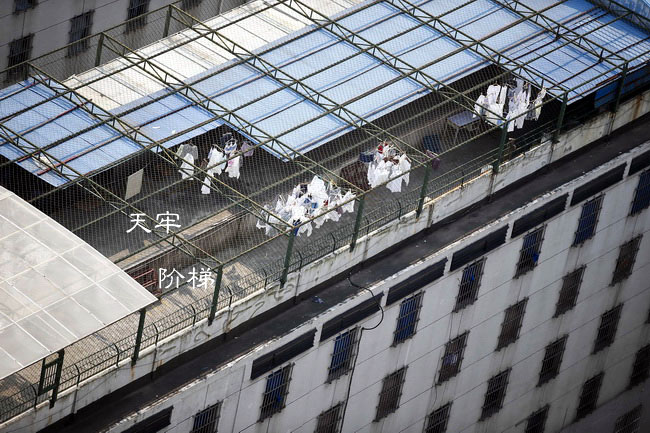 ![]() 七监区楼顶原天牢,关在里面四面封闭,一年四季上面刮风下雨,冬天更冷。浅蓝色的是工厂间顶棚,透明白色的玻璃钢大顶棚是下雨天晒衣服的,二旁有排水沟。监区大楼长约六十五米,宽约十五米。 |