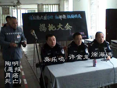 医务犯陈勇明(麻醉抢劫犯,被判十三年),迫害法轮功学员后,二零一四年底肛门肠道里生东西,流脓及血,白天也会流出大便,收不住,不得不住医院开刀,更巧的是,他也去上海市监狱总医院与陶明同住一起,是他把陶明呕吐上报送医院的,结果他自己也去医院了,就叫过去的医务犯孙永康(杀人分尸犯,被判死缓,迫害法轮功学员后,突然得了高血压,吓得他也开始比划着盘腿打坐)来顶替他的位置。