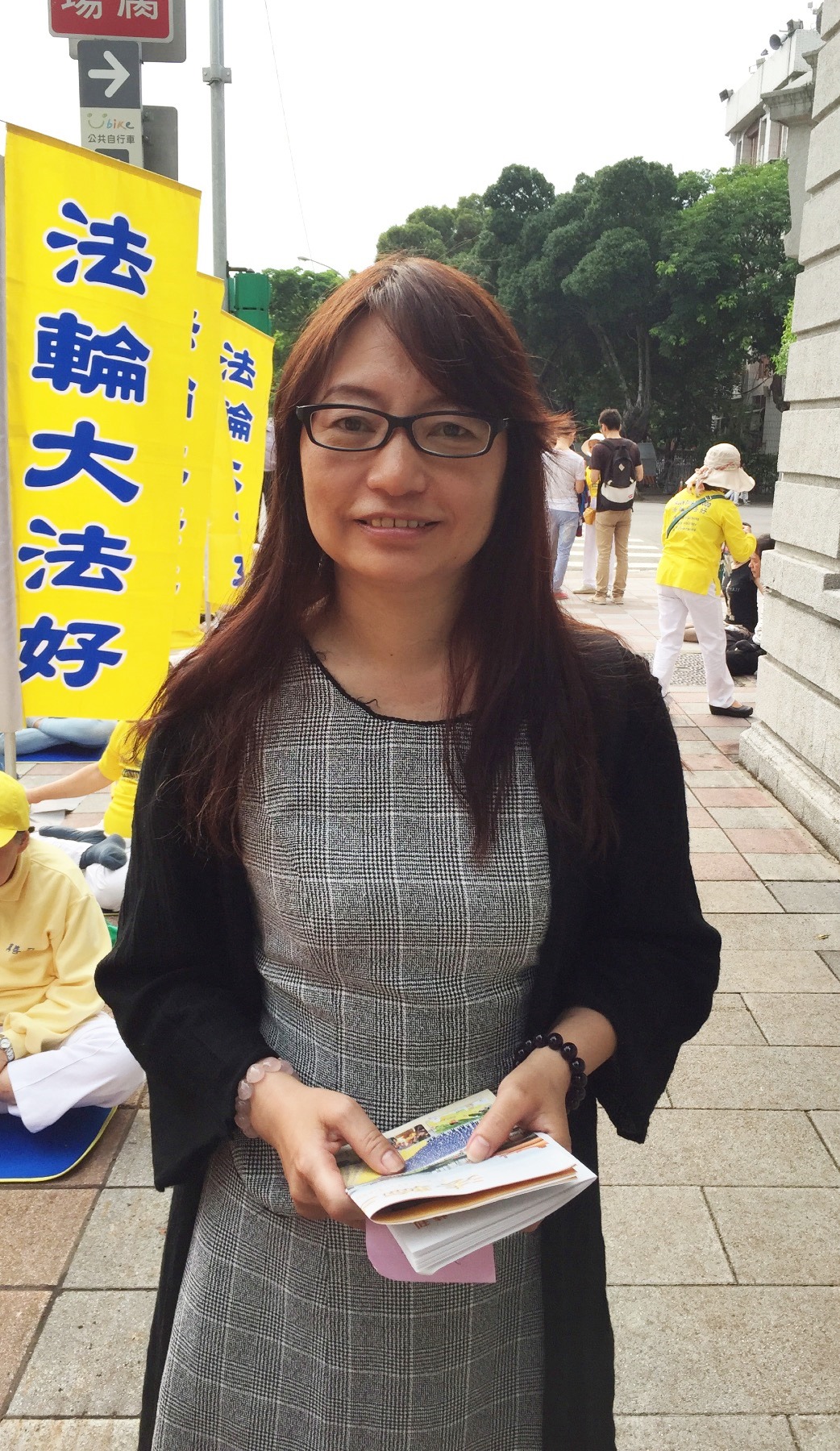 从事室内设计的王美兰,在旁向学员询问如何修炼法轮功。王美兰表示,许多年前看到一些关于法轮功的负面报导,在她的心中产生疑惑;但事实上,她所接触到修炼法轮功的朋友,每个都是好人,人品至上。渐渐地,她不相信中共的谎言,在朋友推荐下,她开始阅读《转法轮》,她自身也感受到奇妙变化,引发她更大的兴趣,想更深入了解和修炼法轮功。