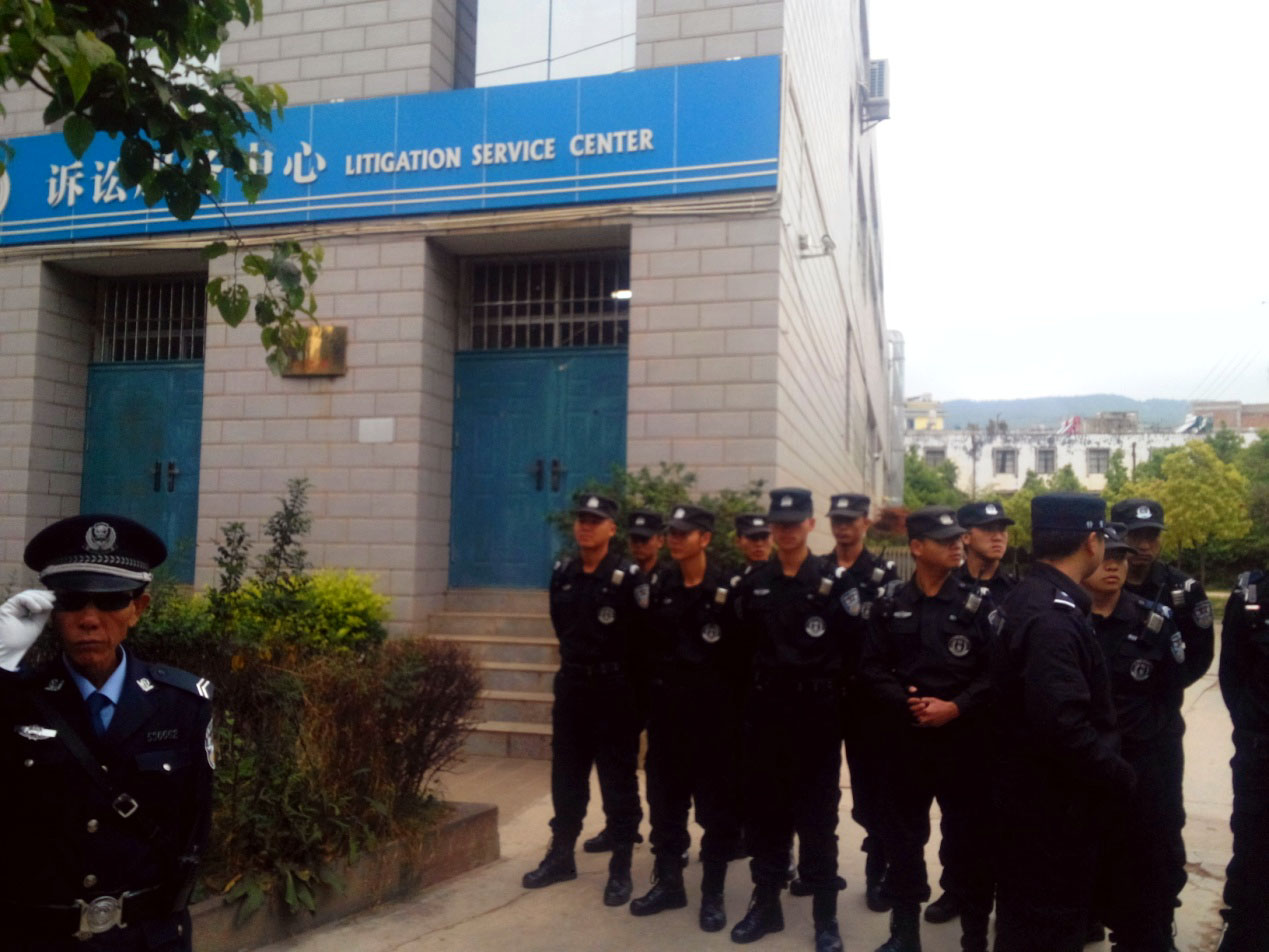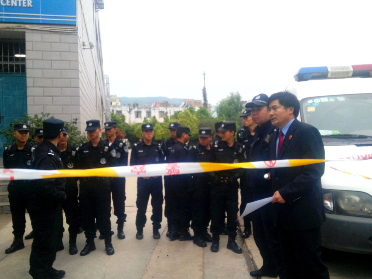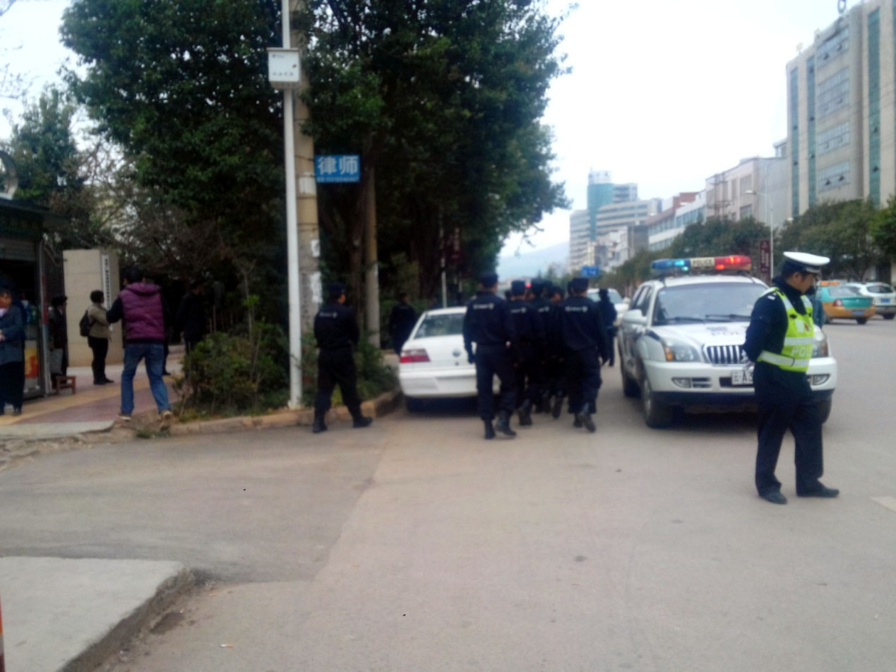 看这阵势,路人纷纷猜测:肯定是哪位大贪官受审,搞这大排场!然而,当天不是审什么大贪官或者重要刑事罪犯,而是对四位修炼“真善忍”的善良法轮功学员开庭。昆明市、石林县、嵩明县、东川区、盘龙区等地的国保、610、政法委等公检法人员也到了,一时间戒备森严、杀气腾腾!