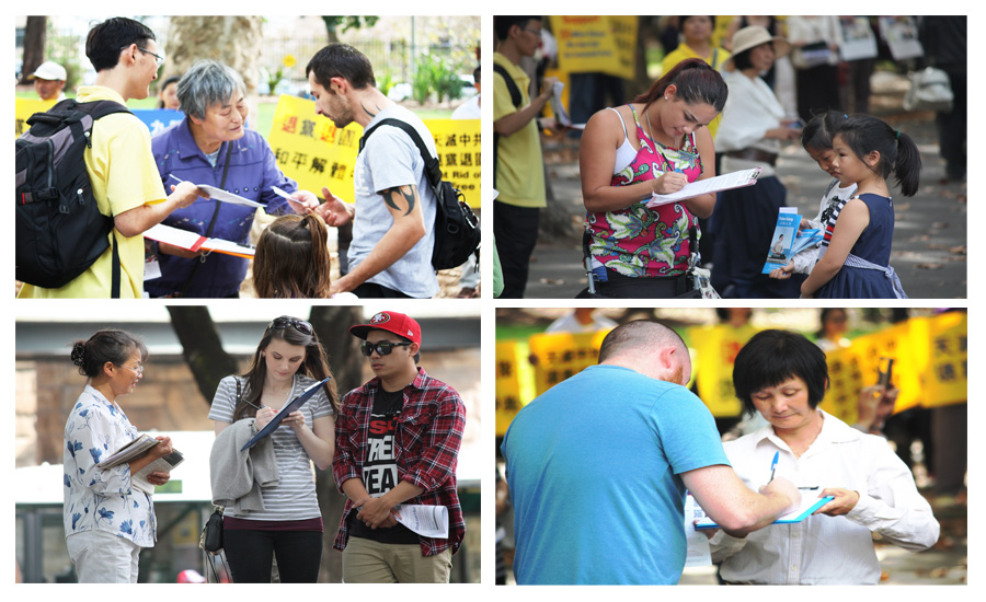 ![]() 悉尼各界人士在市中心贝尔莫公园举行集会,声援二亿中国人三:退. |