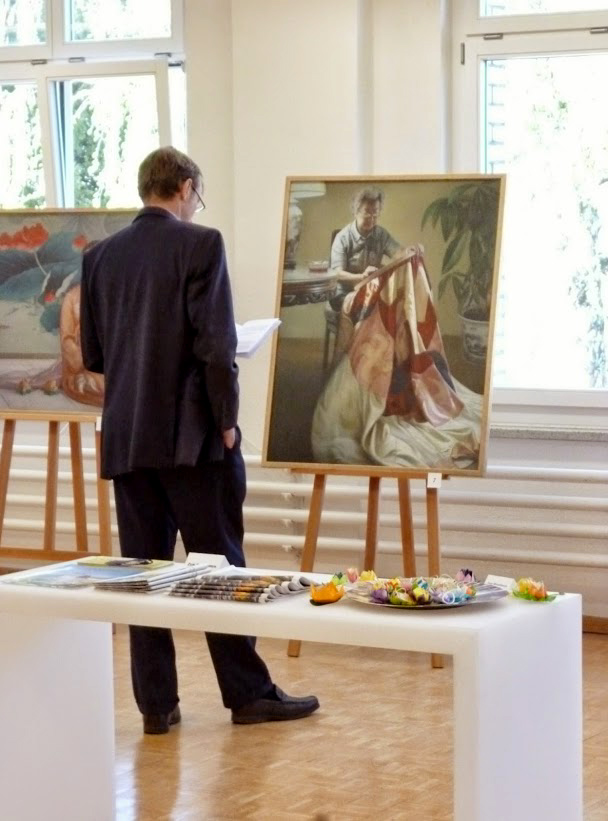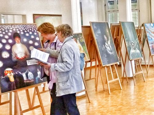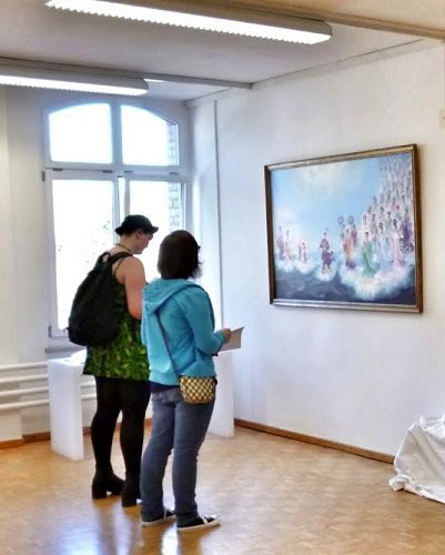 ![]() 图:“真善忍国际美展”在瑞士温特吐(Winterthur)首次举办,观众仔细观看作品。 |
