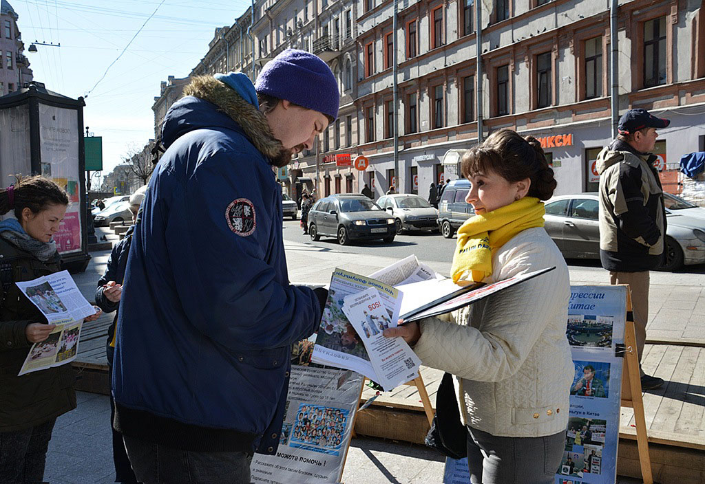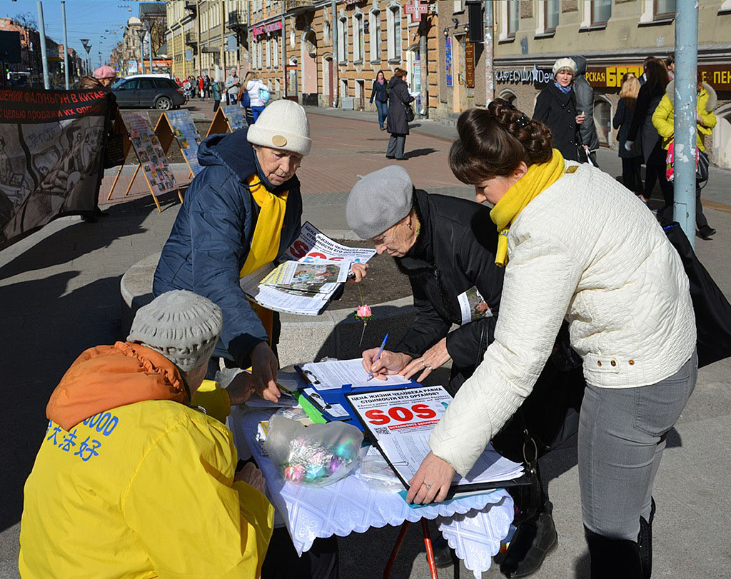 ![]() 法轮功学员在俄罗斯圣彼得堡涅瓦大街附近讲真相征签 |