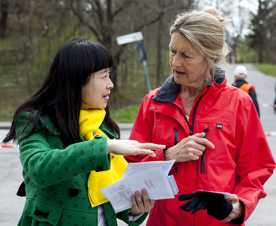 当天正值瑞典女子半程马拉松比赛,中使馆前是参赛运动员的必经之路。法轮功优美的炼功音乐、舒缓祥和的五套功法,吸引了很多来观看马拉松比赛的路人驻足观看。人们对这和平的抗议行动表示赞赏,很多人主动上前了解真相。