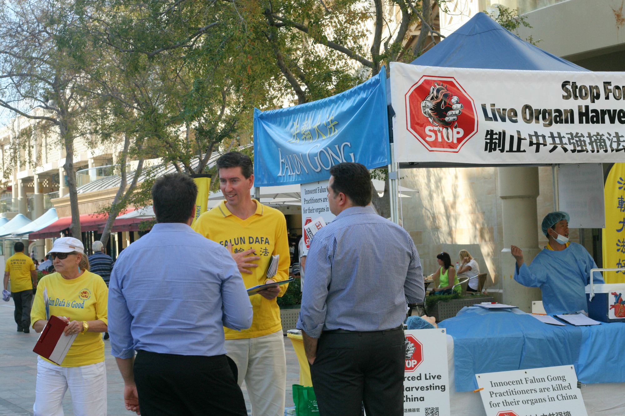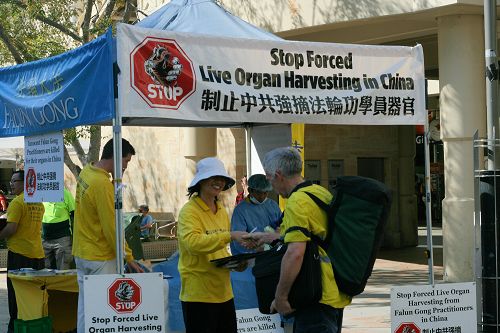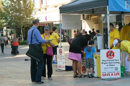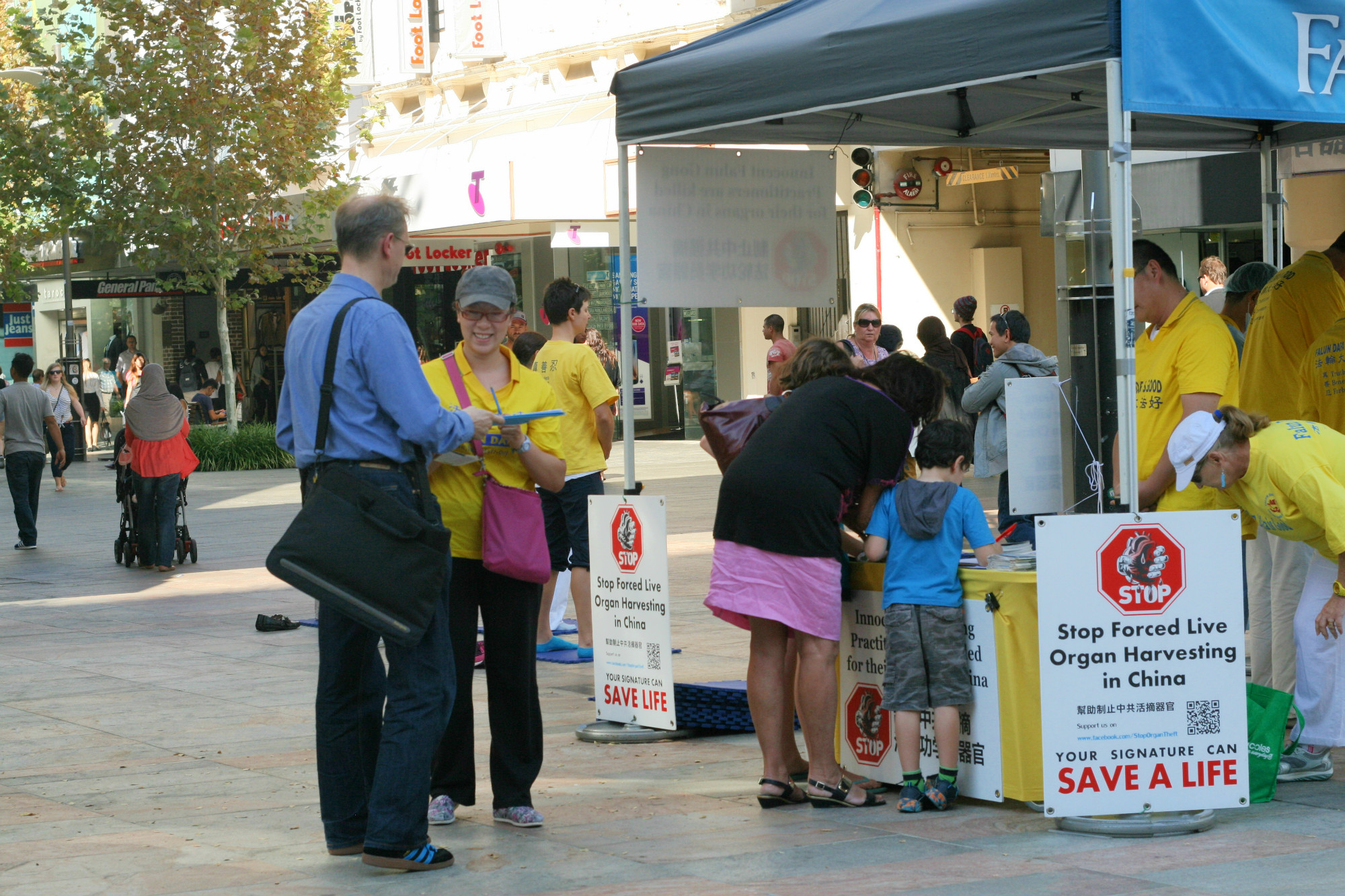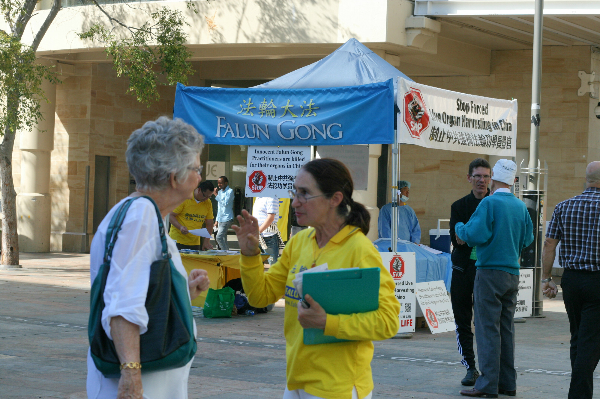 克洛伊•戴维森(Chloe Davidson )是头一次在珀斯市中心听说“中共活摘器官”的事,她惊讶地说:“这怎么可能?我不敢相信。”学员给她讲述了细节,给了她真相资料,并告诉她上网去看澳洲电视台SBS播放的《活摘》纪录片。听后,她非常吃惊,从法轮功学员手中拿了一把真相资料,说先把这些资料放到她上班的地方,给同事们看。回程时学员们还在传真相,看到她一路都在跟别人说“活摘器官”的事情,她告诉学员说:“我忍不住要告诉别人,这太可怕了。”