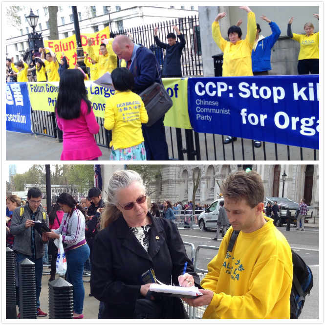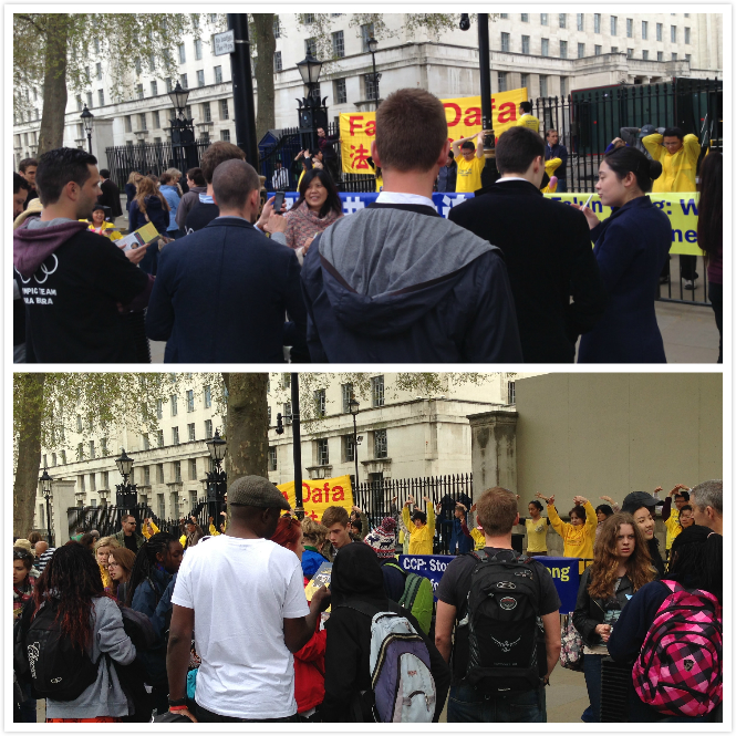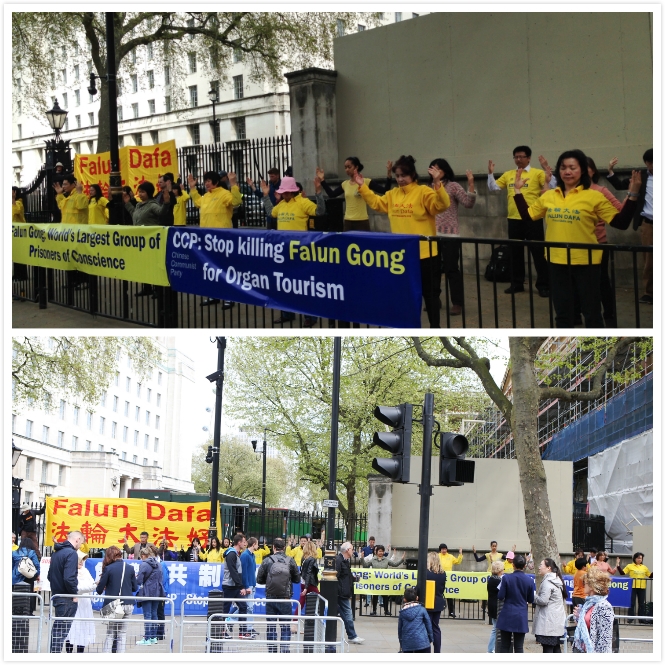 这天,英国法轮功学员在伦敦英国首相府对面(Richmond Terrace opposite Downing Street)、圣马丁广场和唐人街三个地点同时举行集体炼功、讲真相反迫害活动,向世人展现法轮大法的美好,揭露中共残酷迫害法轮功和活摘法轮功学员器官贩卖牟利的暴行,同时开展征签呼吁广大民众谴责邪恶、共同制止中共活摘器官反人类罪恶。